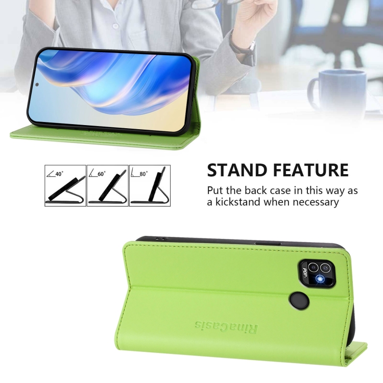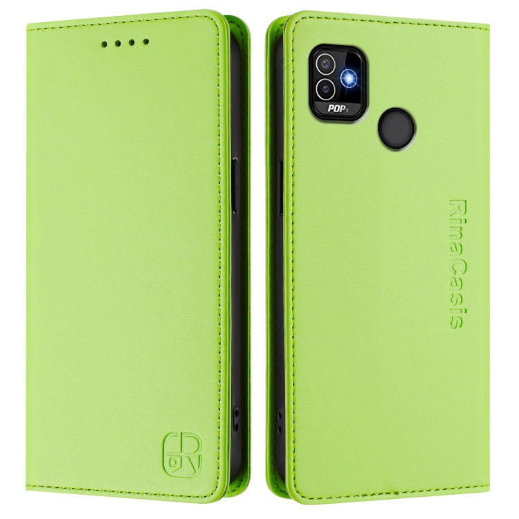 Funda de Cuero para Tecno Pop 5 Rc01 con Doble Pliegue y Succión Magnética Rfid (Verde Hierba)