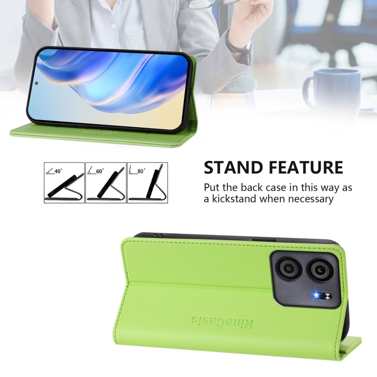 Funda Cuero RFID Blu View 5 RC01 Doble Pliegue Succión Magnética (Verde Hierba)