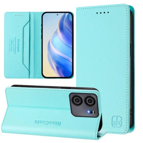 Funda de Cuero RFID doble pliegue con Succión Magnética para Blu View 5 RC01 (Verde Menta)