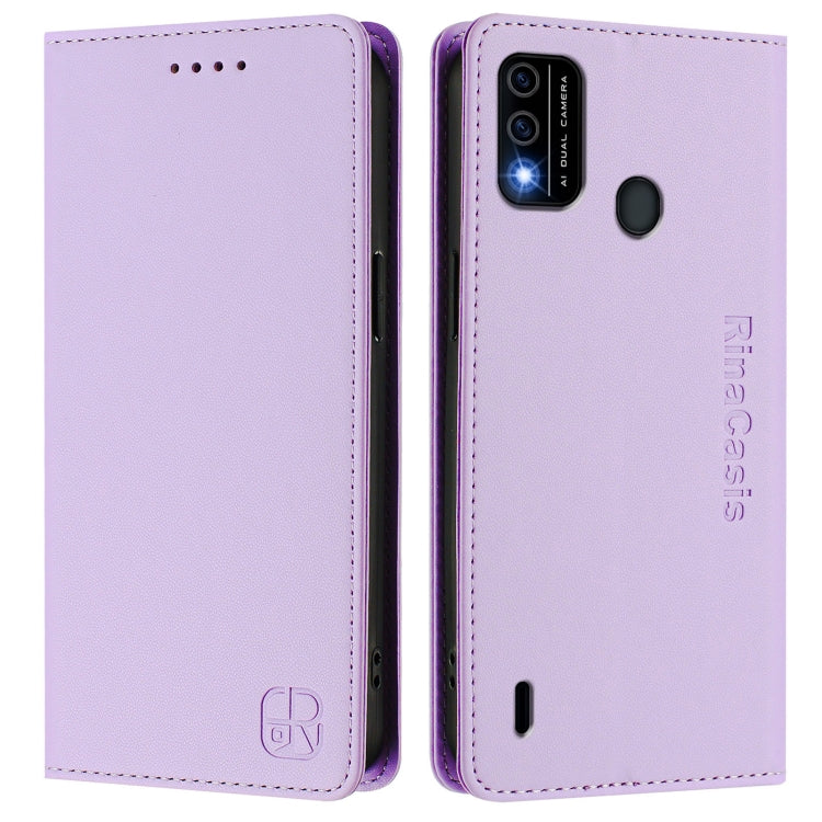 Funda de Cuero RFID para Teléfono Itel A48 Rc01 con Doble Pliegue y Succión Magnética (Morado Claro)
