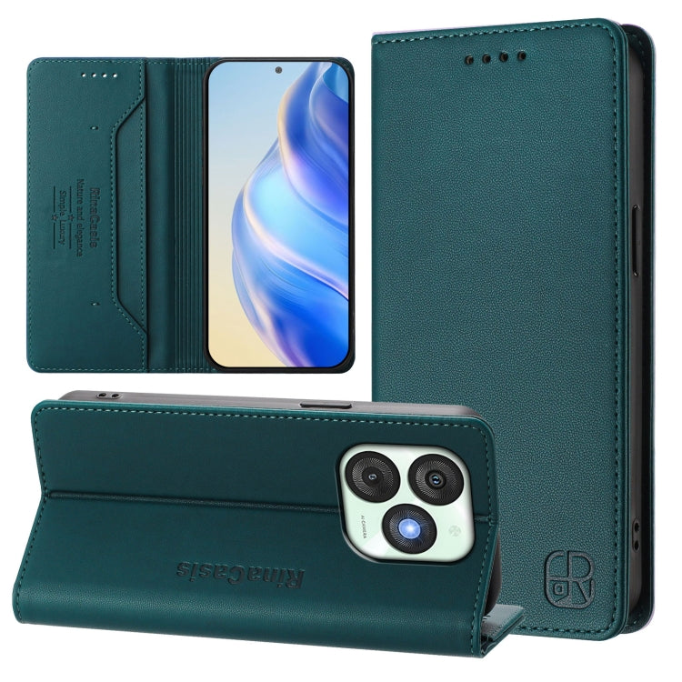 Funda de Cuero Rfid con Doble Pliegue y Succión Magnética para Teléfono Itel A50 Rc01 (Verde Oscuro)