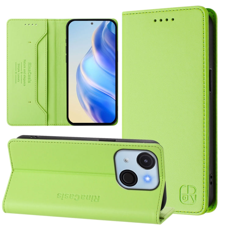 Funda de Cuero Rfid para Teléfono Itel A50C Rc01 con Doble Pliegue y Succión Magnética (Verde Hierba)