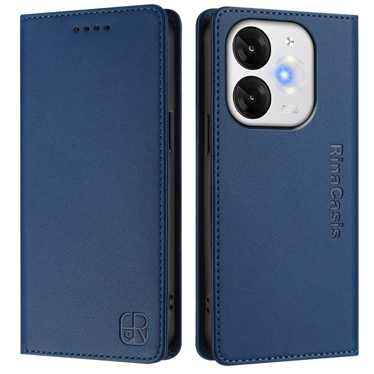 Funda de Cuero Rfid para Teléfono Itel A80 4G Rc01 con Doble Pliegue y Succión Magnética (Azul Oscuro)