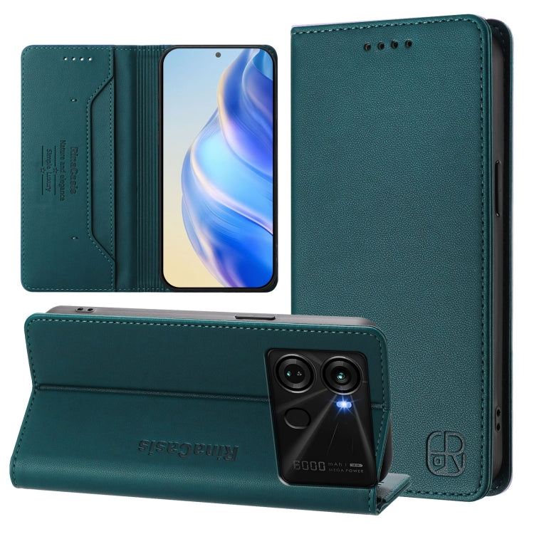 Funda de Cuero RFID con Doble Pliegue y Succión Magnética para Itel P40 Rc01 (Verde Oscuro)