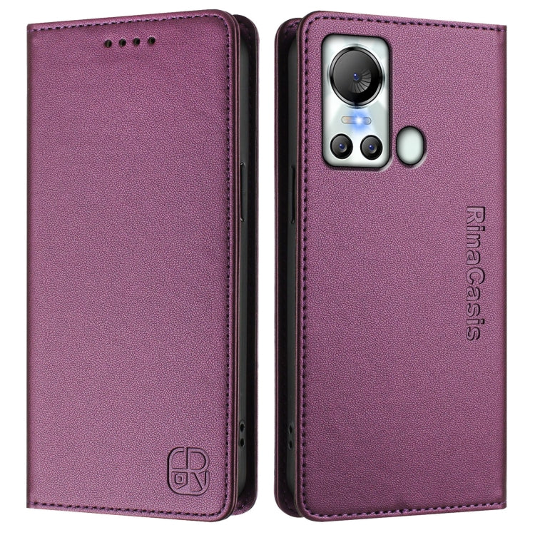 Funda de Cuero Rfid con Doble Pliegue y Succión Magnética para Itel S18/Vision 5 Rc01 (Violeta)