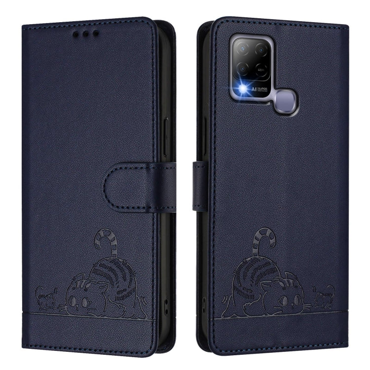 Funda de Cuero Rfid para Infinix Hot 10T/10S con Estampado de Rata y Gato En Relieve y Cordón (Azul)