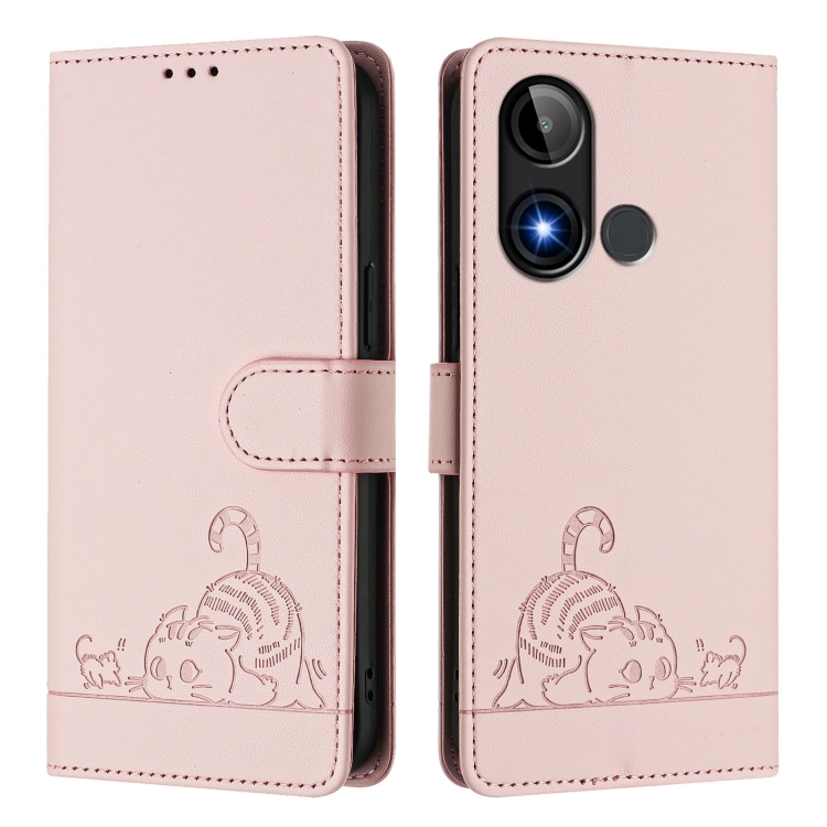 Funda Cuero RFID con Relieve Gato y Rata para Blu C9 con Cordón (Rosa)