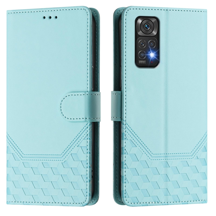 Funda de Cuero Rfid con Relieve de Panal Global para Redmi Note 11 4G / 11S 4G / 12S (Verde Menta)