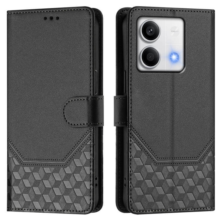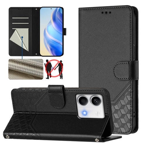 Funda de Cuero Rfid con Relieve de Panal Global para Redmi Note 13 5G (Negra)