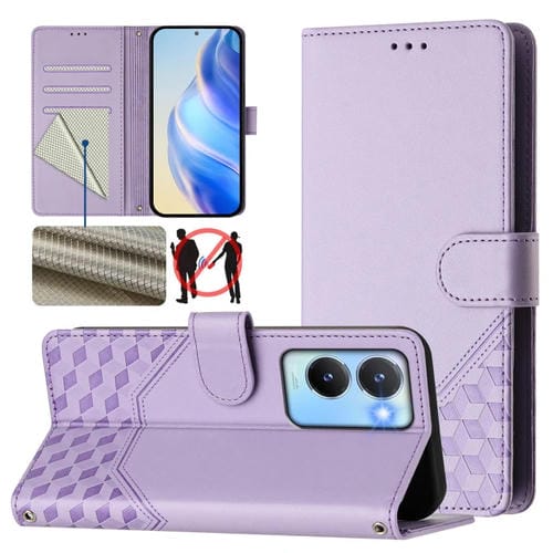 Funda de Cuero Rfid con Relieve de Panal Global para Vivo Y56 5G / Y16 4G / Y02S 4G (Morado Claro)