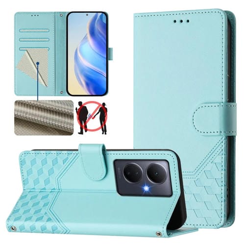 Funda de Cuero Rfid con Relieve de Panal Global para Vivo Y78+ 5G / Y78 5G (Verde Menta)