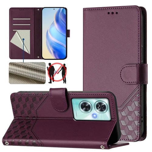 Funda de Cuero Rfid con Relieve de Panal para OnePlus Nord N30 Se 5G (Violeta)