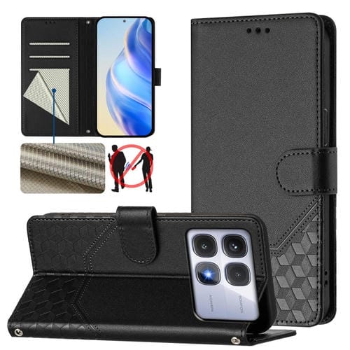 Funda de Cuero Rfid con Relieve de Panal para Redmi K70 Ultra 5G (Negra)