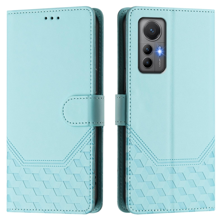 Funda de Cuero Rfid con Relieve de Panal para Xiaomi 12 Lite (Verde Menta)
