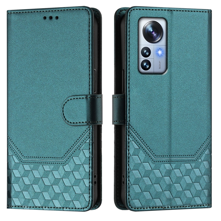 Funda de Cuero Rfid con Relieve de Panal para Xiaomi 12 Pro/12S Pro (Verde Pavo Real)