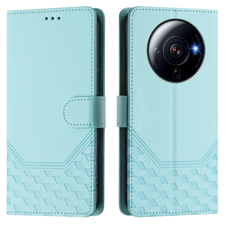 Funda de Cuero Rfid con Relieve de Panal para Xiaomi 12S Ultra (Verde Menta)