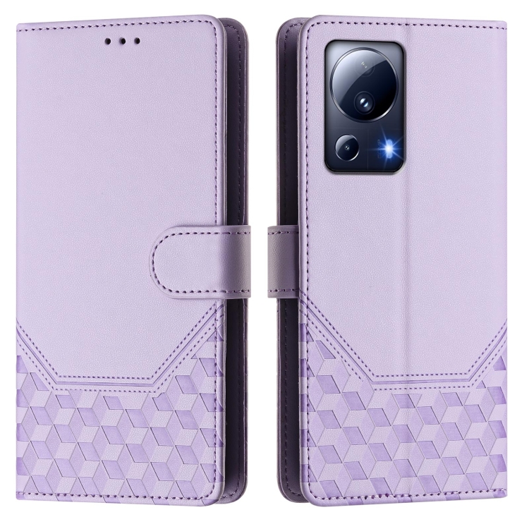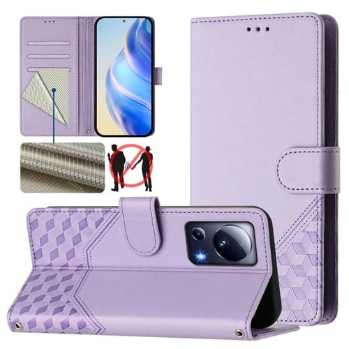 Funda de Cuero Rfid con Relieve de Panal para Xiaomi 13 Lite 5G/Civi 2 (Morado Claro)