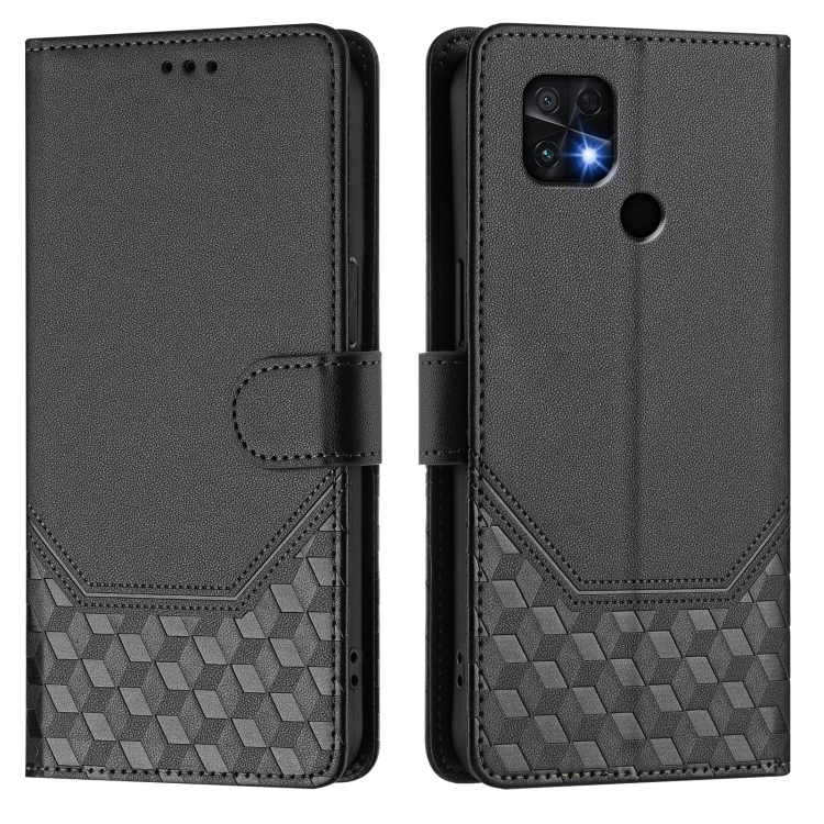 Funda de Cuero Rfid con Relieve de Panal para Xiaomi Poco C40/Redmi 10C (Negra)