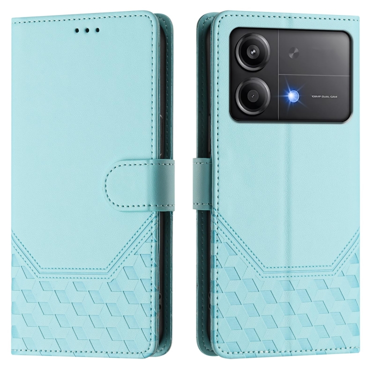 Funda de Cuero Rfid con Relieve de Panal para Xiaomi Poco X6 Neo 5G (Verde Menta)