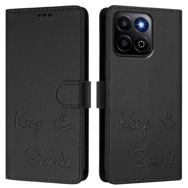 Funda de Cuero Rfid con Relieve Sonrisa Global para Honor 200 Smart 5G (Negra)