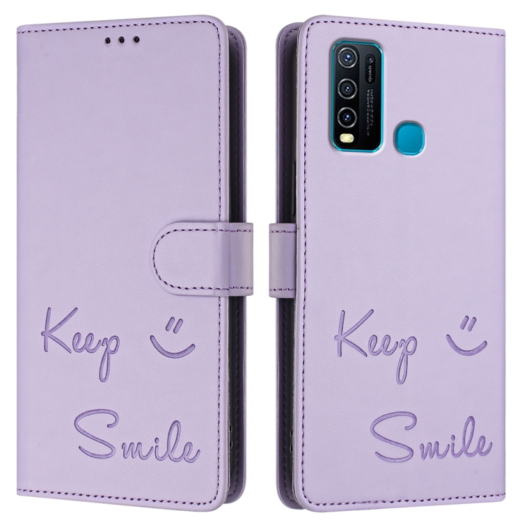 Funda de Cuero Rfid con Relieve de Sonrisa Global para Vivo Y30 4G (Morado Claro)