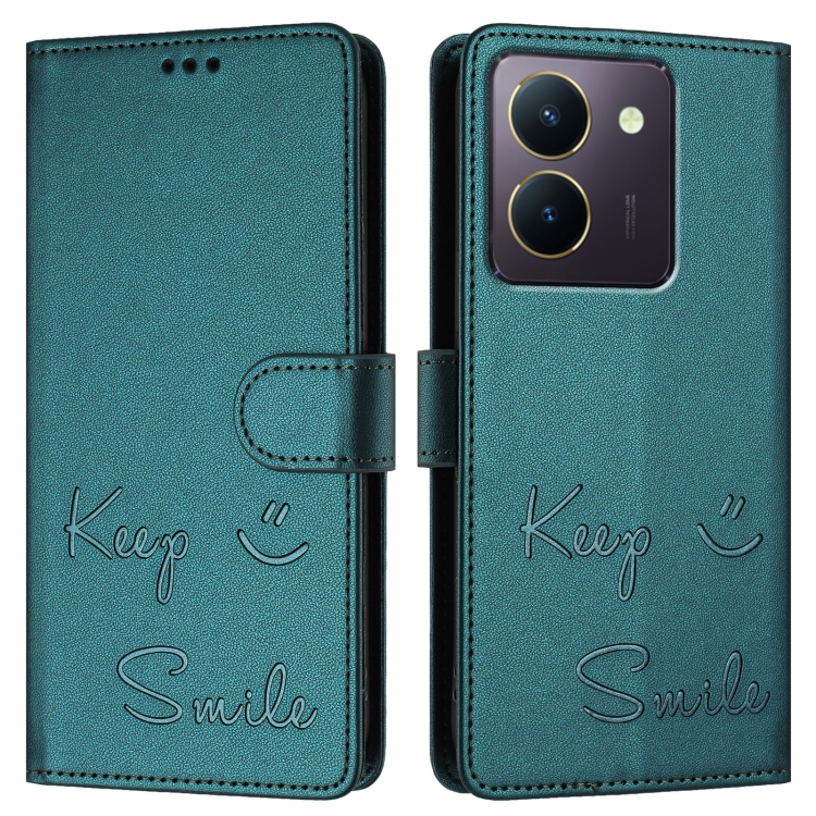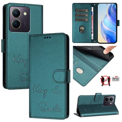 Funda de Cuero Rfid con Relieve de Sonrisa Global para Vivo Y36 4G (Verde Pavo Real)
