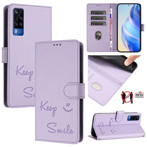 Funda de Cuero Rfid con Relieve de Sonrisa India para Vivo Y51 2020 (Morado Claro)