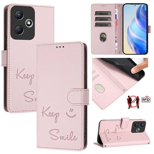 Funda de Cuero RFID con Relieve Sonrisa NFC para Infinix Hot 30 Play (Rosa)