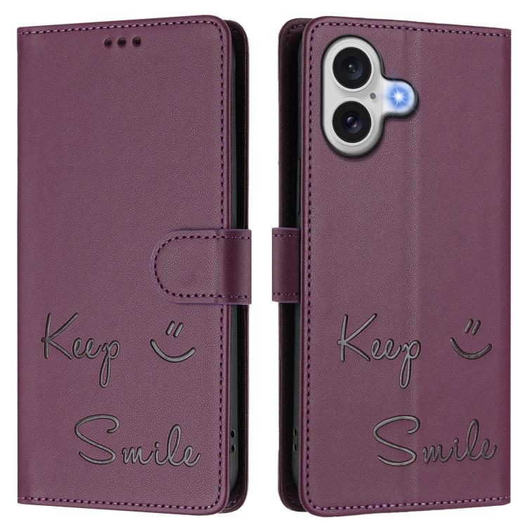Funda de cuero RFID con relieve de sonrisa para iPhone 17 (violeta)