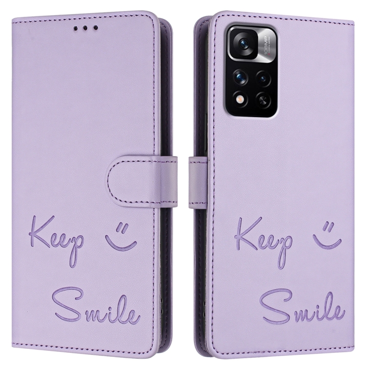 Funda de Cuero Rfid con Relieve de Sonrisa para Redmi Note 11 Pro+ 5G Eu (Morado Claro)