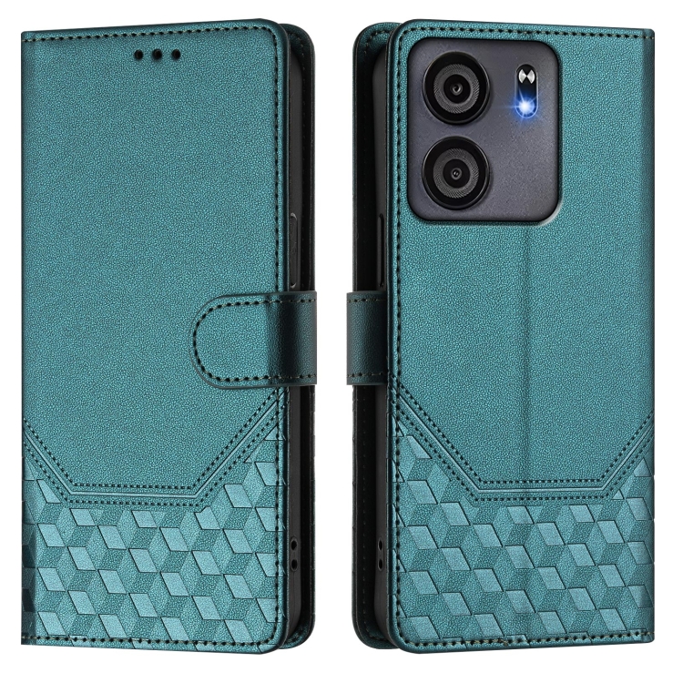 Funda de Cuero RFID con Relieve Panal para Blu View 5 (Verde Pavo Real)