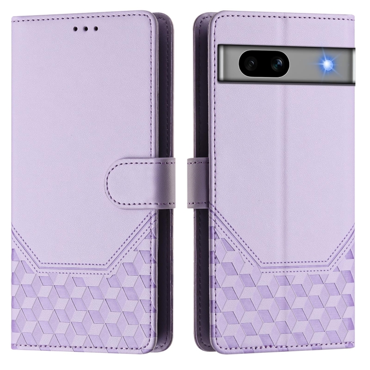 Funda de Cuero Rfid con Relieve en Panal para Google Pixel 7A (Morado Claro)