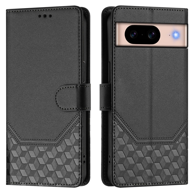 Funda de Cuero Rfid con Relieve en Panal para Google Pixel 8A (Negra)