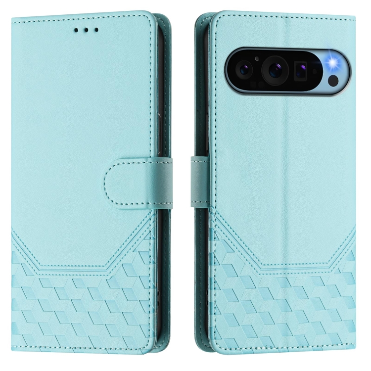 Funda de Cuero Rfid con Relieve en Panal para Google Pixel 9 y 9 Pro (Verde Menta)