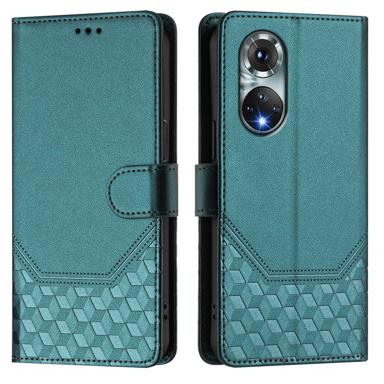 Funda de Cuero Rfid con Relieve en Panal para Huawei Nova 9 (Verde Pavo Real)