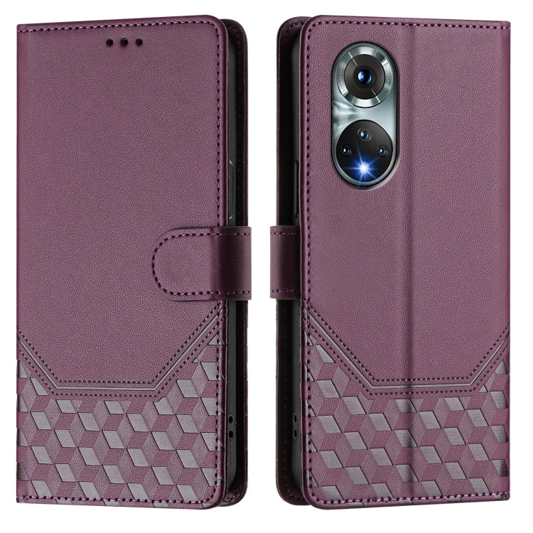 Funda de Cuero Rfid con Relieve en Panal para Huawei Nova 9 (Violeta)