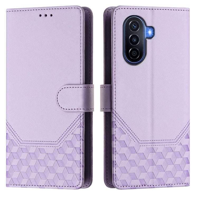 Funda de Cuero Rfid con Relieve en Panal para Huawei Nova Y70 Plus (Morado Claro)