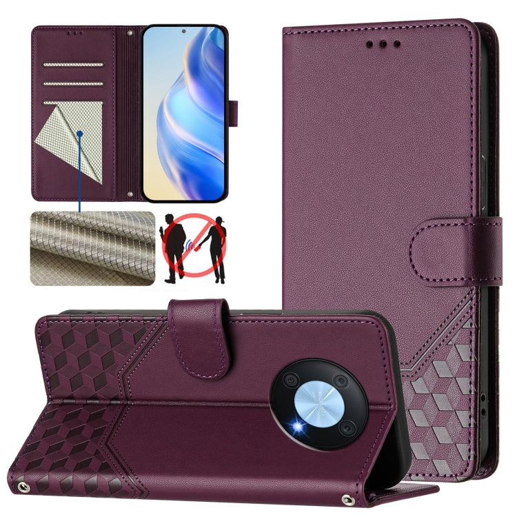 Funda de Cuero Rfid con Relieve en Panal para Huawei Nova Y90 (Violeta)