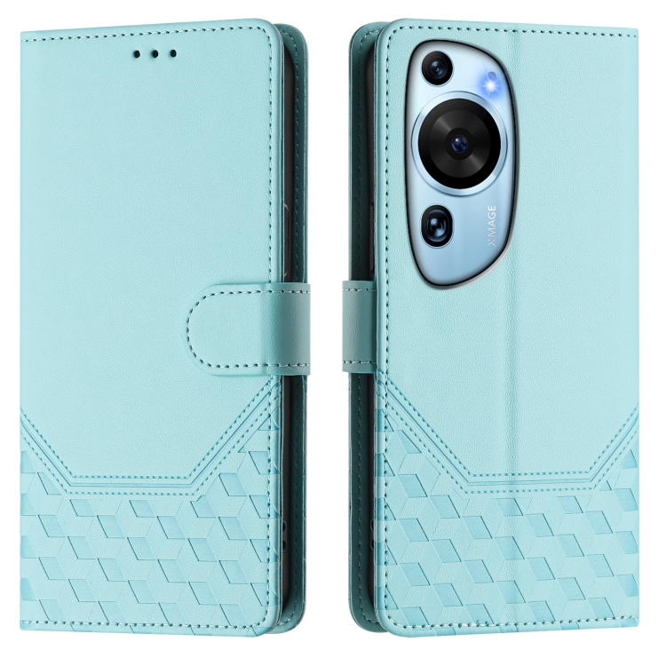 Funda de Cuero Rfid con Relieve en Panal para Huawei P60 (Verde Menta)