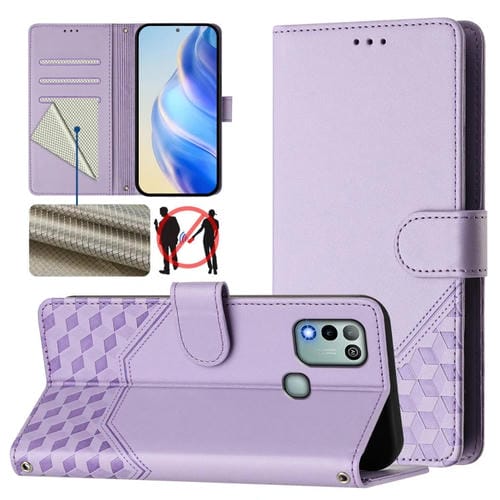 Funda de Cuero Rfid con Relieve en Panal para Infinix Hot 10 Play y Hot 11 Play (Morado Claro)