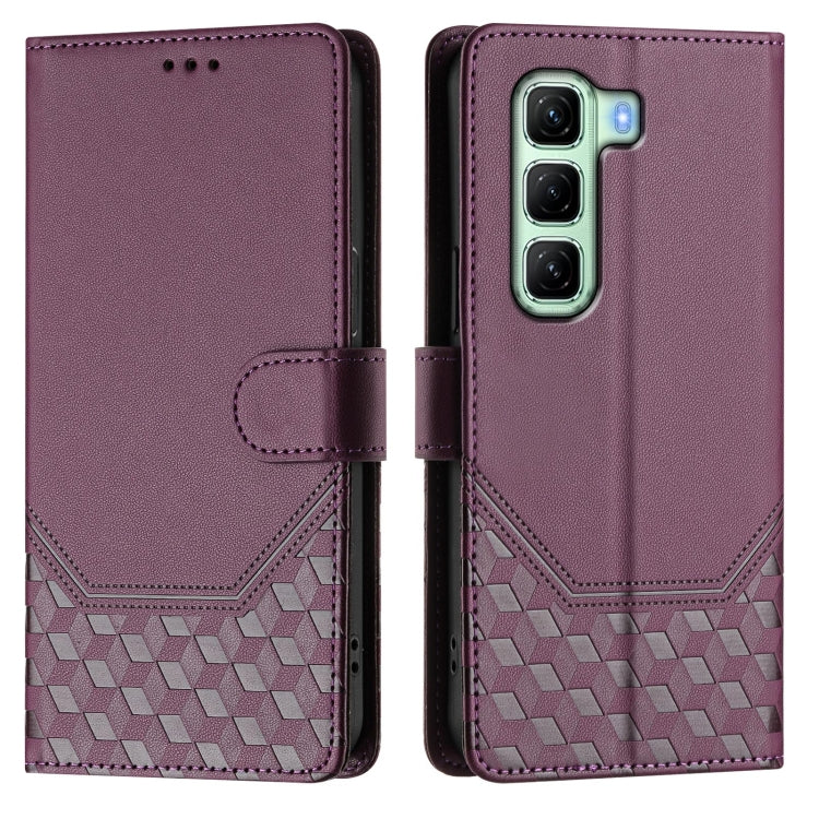 Funda de Cuero Rfid con Relieve en Panal para Infinix Hot 50 4G (Violeta)