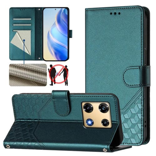 Funda de Cuero Rfid con Relieve en Panal para Infinix Note 30 Pro 4G (Verde Pavo Real)