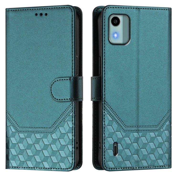 Funda de Cuero Rfid con Relieve en Panal para Nokia C12 (Verde Pavo Real)