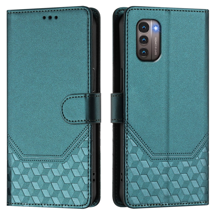Funda de Cuero Rfid con Relieve En Panal para Nokia G11 4G y G21 4G (Verde Pavo Real)