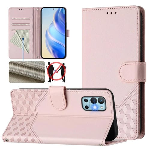 Funda de Cuero Rfid con Relieve en Panal para OnePlus 9R (Rosa)