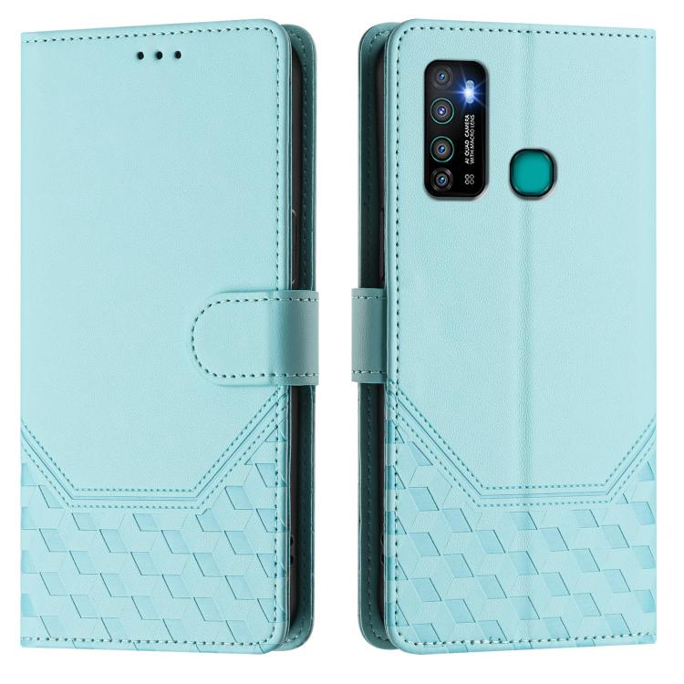Funda de Cuero Rfid con Relieve en Panal para Tecno Camon 15/15 Air (Verde Menta)