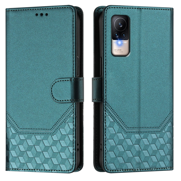 Funda de Cuero Rfid con Relieve En Panal para Xiaomi Civi 1S (Verde Pavo Real)