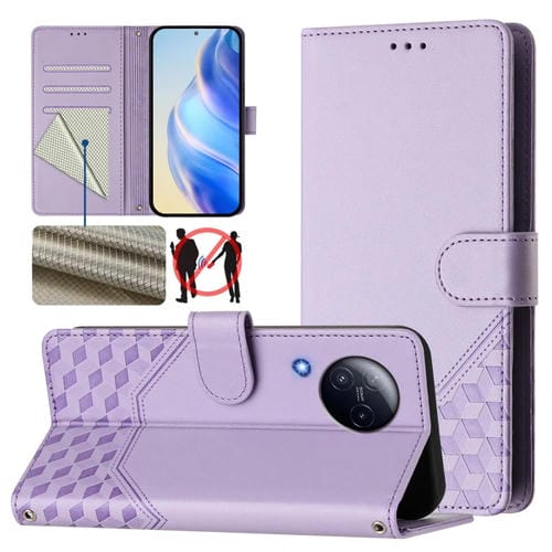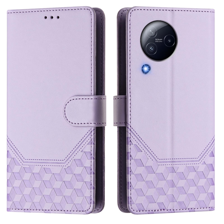 Funda de Cuero Rfid con Relieve En Panal para Xiaomi Civi 3 (Morado Claro)