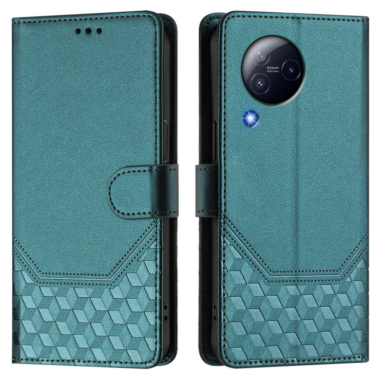 Funda de Cuero Rfid con Relieve En Panal para Xiaomi Civi 3 (Verde Pavo Real)