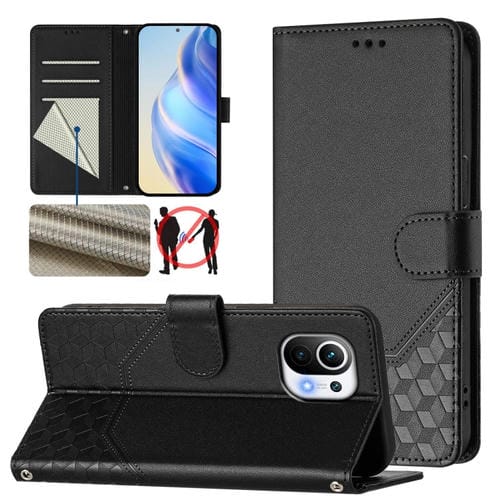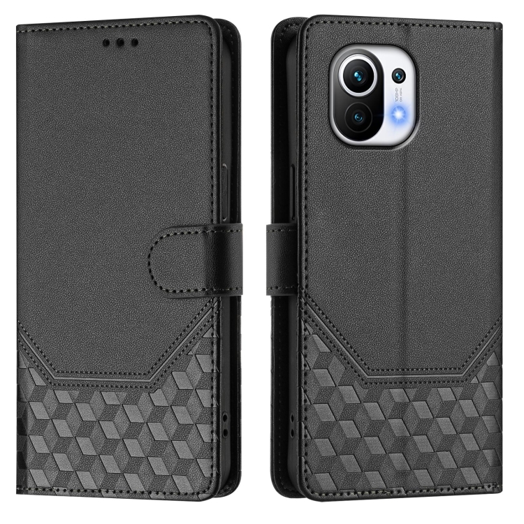 Funda de Cuero Rfid con Relieve En Panal para Xiaomi Mi 11 (Negra)